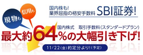 浪費家ナッツです。おはようございます。 やっぱり来ましたSBI証券。スタンダートプランの国内株式手数料の値下げを発表です。 投資信託の信託報酬率の値下げバトルもすごいレベルに来ていますが、SBI証券と楽天証券のバトルも素晴らしいですね。